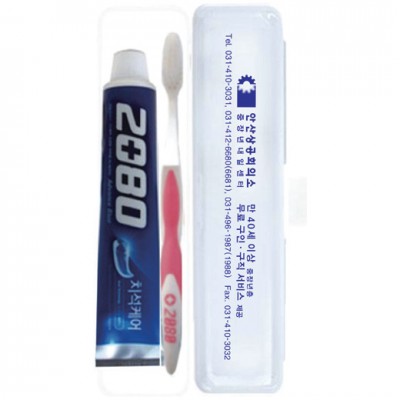 | 기타사항 | (종이케이스별도 150원) •Size200×50×30mm •2080블루치약100g,2080칫솔 ※구성품 교체 가능 / 칼라인쇄시 100원추가 |